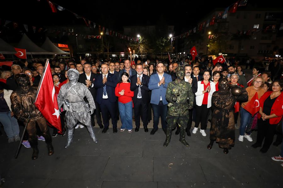 Gecenin finalinde Ahmet Piriştina Demokrasi Meydanı’nda, Cumhuriyet sevdalılarına seslenen Narlıdere Belediye Başkanı Erman Uzun, “Cumhuriyet, yoksul bir köy çocuğuna Cumhurbaşkanı olma hayali kurduran bir fırsat düzenidir. Benim gibi bir memur çocuğuna bugün burada belediye başkanı olma fırsatı veren bir fırsat eşitliği düzenidir. Bizler Cumhuriyet’in yılmaz savunucuları, bekçileriyiz. Demokrasiye, laikliğe, özgürlüğe inanıyoruz. Cumhuriyetin ikinci yüzyılında bizlere düşen görev Atatürk’ün gösterdiği hedef doğrultusunda, aklın ve bilimin ışığında, daha adil, daha çağdaş bir Türkiye inşa etmektir. Birlikte, omuz omuza, Cumhuriyet’in 102 yıllık birikimini geleceğe taşıyacağız. Bu vesileyle başta Mustafa Kemal Atatürk ve silah arkadaşları olmak üzere, Cumhuriyetimizin tüm kahramanlarını rahmet, minnet ve saygıyla anıyorum. Yaşasın Cumhuriyet. Yaşasın Mustafa Kemal Atatürk” dedi.