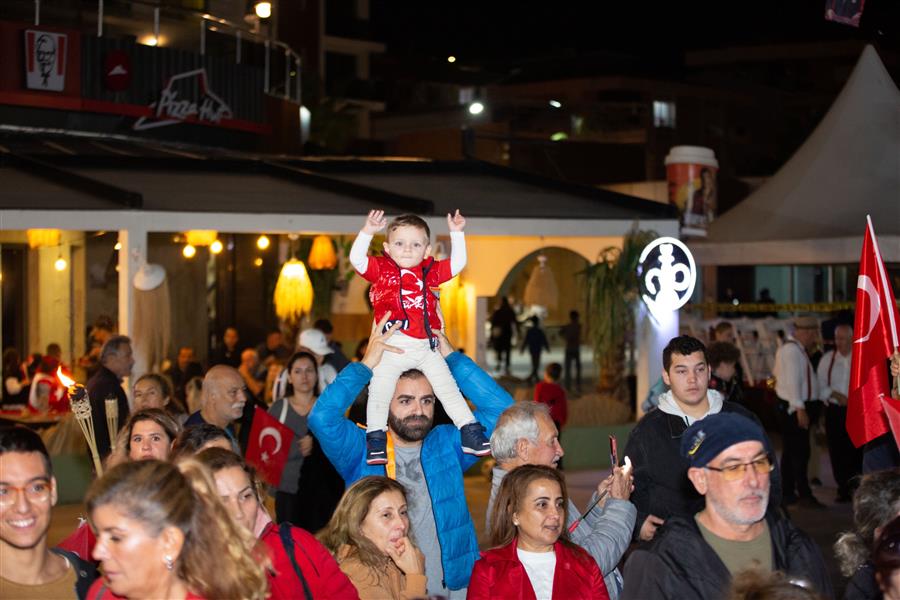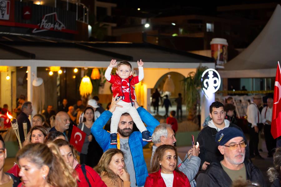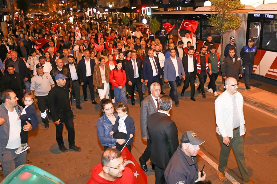 Yoğun bir kalabalıkla gerçekleştirilen 29 Ekim Korteji, Belediye Binası önünden başladı. Ellerinde Türk bayrakları ve Cumhuriyetimizin kurucusu Gazi Mustafa Kemal Atatürk’ün posteri ile yürüyen vatandaşlar, Narlıdere’yi Cumhuriyet ışığıyla aydınlattı. Bando eşliğinde, ellerinde meşalelerle Cumhuriyet coşkusu yaşayan coşkulu kalabalığa, birçok vatandaş da ellerinde bayraklarla evlerinin balkonlarından eşlik etti. Gencinden yaşlısına 7’den 70’e 29 Ekim Korteji’nde katılan Narlıdereliler; Mithatpaşa Caddesi ve Güngören Caddesi güzergâhından ilerleyerek Ahmet Piriştina Demokrasi Meydanı’na ulaştı.