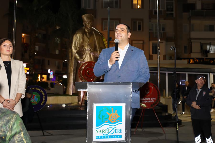 CHP İzmir Milletvekili Ednan Arslan ise Narlıdereli vatandaşlara teşekkür ederek, “Bugün burada Cumhuriyet nasıl kutlanır, dost olan olmayan herkese gösterdiğiniz için teşekkür ediyorum. Cumhuriyet bir kadın devrimidir, Cumhuriyet bir gençlik devrimidir. Cumhuriyet, eşitlikten, özgürlükten yanadır. Cumhuriyet kurulmasaydı köy çocukları fırsat eşitliğinde yararlanamayıp doktor olmayacaktı, öğretmen olmayacaktı, milletvekili olamayacaktı, Cumhurbaşkanı olamayacaktı. Gazi Mustafa Kemal Atatürk’ün büyük eseri Cumhuriyetimizi bütün gücümüzle korumak, yaşatmak zorundayız. Gazi Mustafa Kemal Atatürk’ün Büyük Nutku, Gençliğe Hitabesi, Bursa Nutku bizim rehberimizdir. Cumhuriyet erdemdir, Cumhuriyet kimsesizlerin kimsesidir. Bize Cumhuriyetimizi armağan eden Gazi Mustafa Kemal Atatürk ve silah arkadaşlarının, şehitlerimizin önünde bir kez daha sevgi ve saygıyla eğiliyorum” diye konuştu.