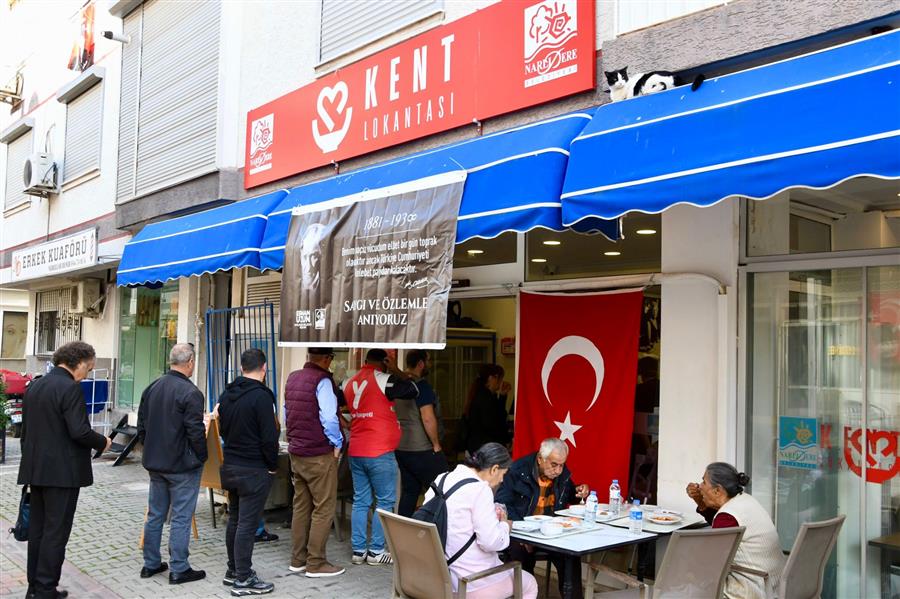 10 Kasım Atatürk’ü Anma Günü kapsamında, Narlıdere Belediyesi Kent Lokantası’nda Gazi Mustafa Kemal Atatürk’ün anısına hayır yemeği verildi. Ata’mızın en sevdiği yemeklerden oluşan özel menü; kuru fasulye, pirinç pilavı, domates çorbası ve helvadan oluştu. Menü, Narlıdere Belediyesi Kent Lokantası’nda Atatürk’ün hayrına ücretsiz olarak vatandaşlara ikram edildi.
